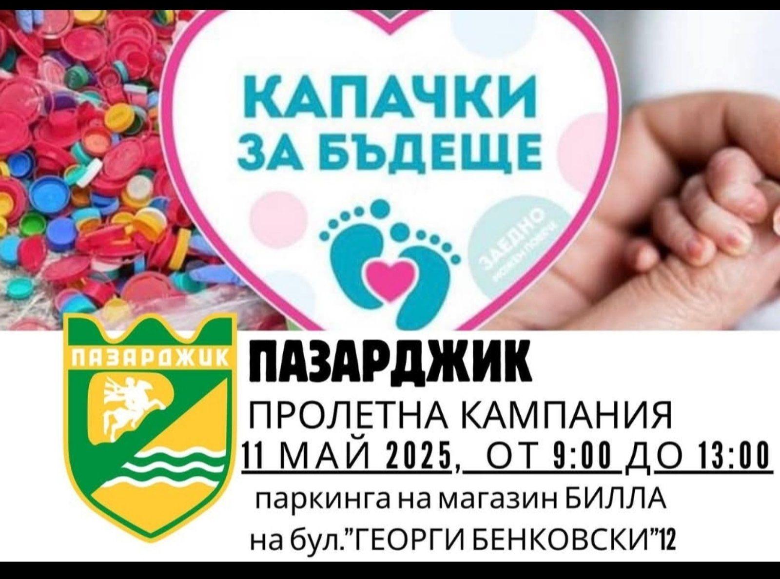 На 11 май 2025 г. (събота) Пазарджик отново ще бъде част от националната кампания „Капачки за бъдеще“ – една от най-мащабните инициативи за събиране и рециклиране на пластмасови капачки в подкрепа на каузи, свързани с детското здраве.