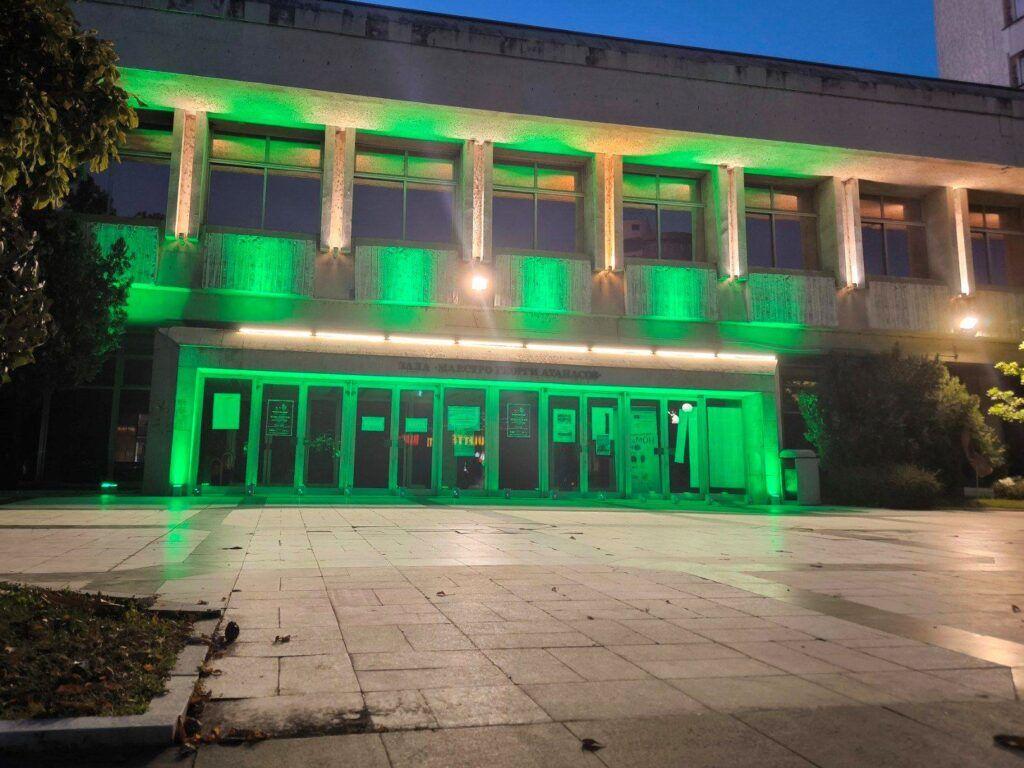 Фасадата на концертна зала „Маестро Георги Атанасов“ в Пазарджик беше осветена в зелено по повод Европейския ден на донорството и трансплантацията на органи.