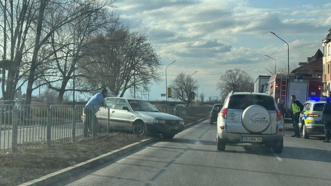 Днес на Околовръстния път край парк „Острова“ се е случил инцидент, при който лек автомобил е излязъл от пътното платно и се е качил върху разделителната ивица. Двете платна за движение в този участък са отделени не само със зелена зона, но и с метална преграда.