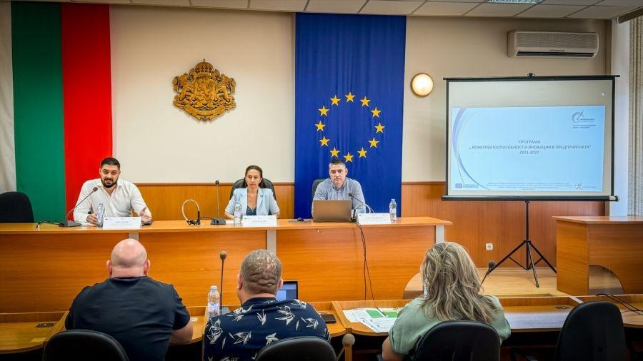 В Пленарна зала на Община Пазарджик, се проведе информационна среща с бизнеса от град Пазарджик, която беше с акцент към възможностите за бизнеса по програма „Конкурентоспособност и иновации в предприятията“ 2021-2027 и програма „Развитие на човешките ресурси“ 2021-2027 г.